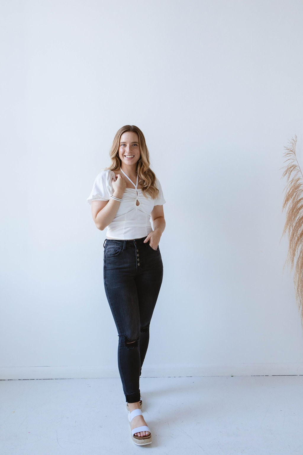Daisy Top is THE spring to summer must have! With the cutest puff sleeves and unique halter design, this top is sure to elevate any look. Plus, you decide when to wear the halter because this top is adjustable and can be worn in an on or off-the-shoulder style!