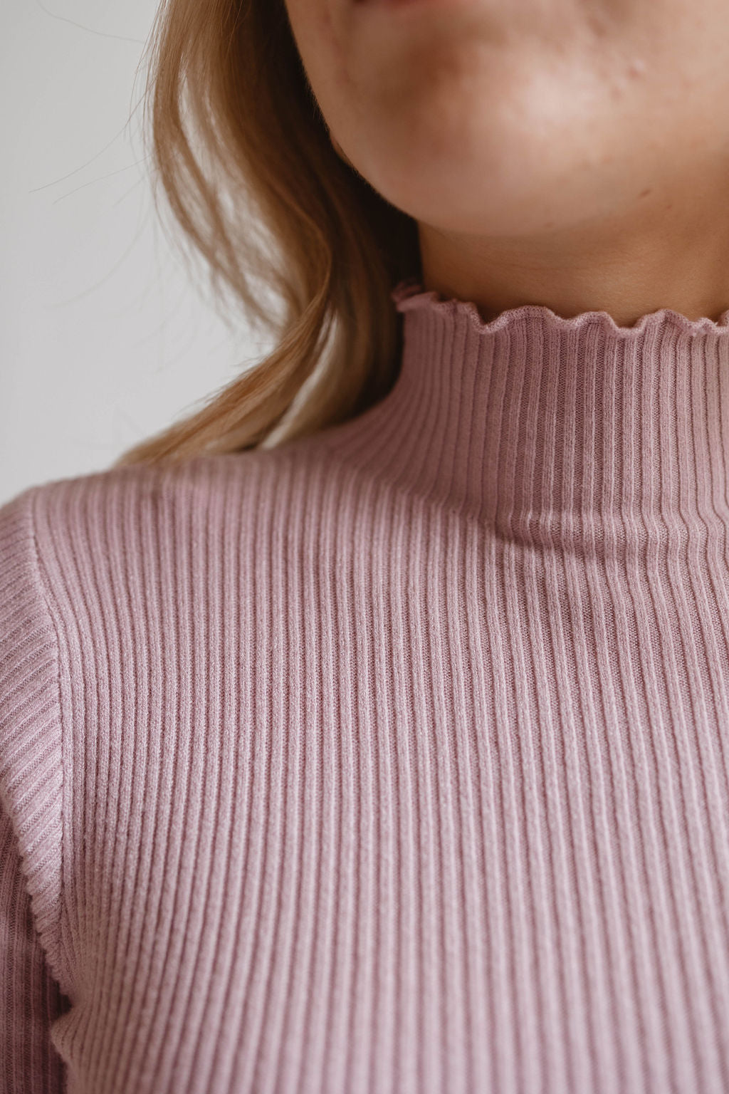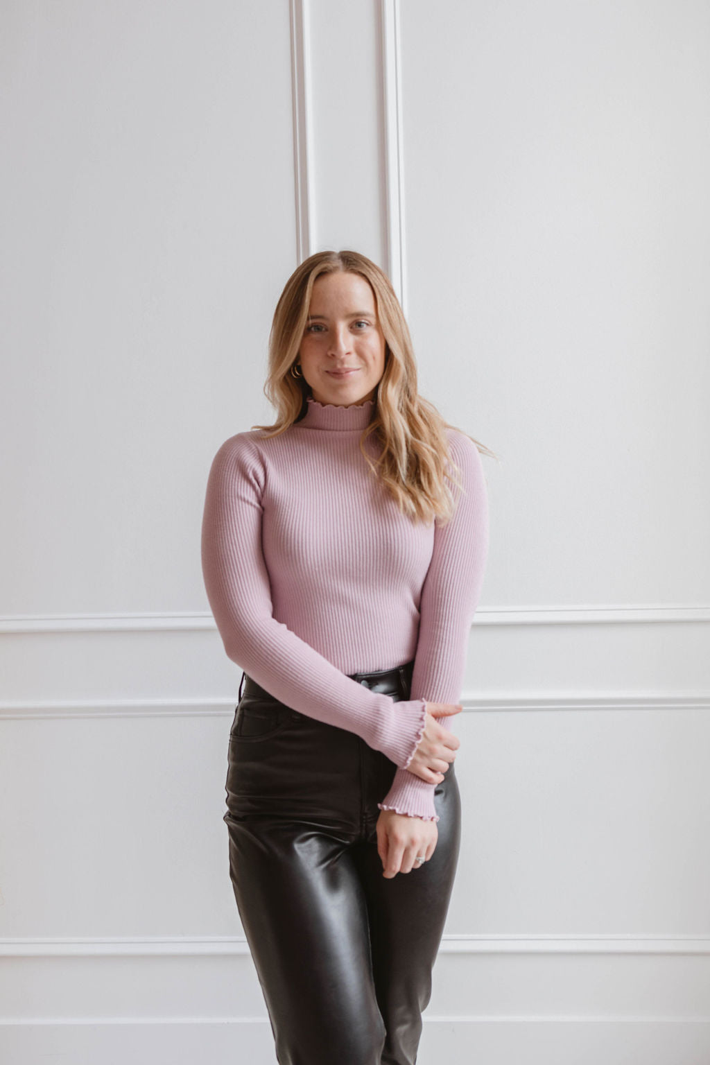 One of our favorite basics! This lilac long sleeve turtleneck top will be a new staple in your closet. It's perfect for layering under jackets and coats or wearing alone with your favorite jeans.